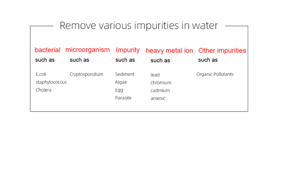 -Elimina un mínimo del 99.9999% de las bacterias transmitidas por el agua y supera los estándares de la EPA para los filtros de agua, elimina un mínimo del 99.9% de los parásitos protozoarios transmitidos por el agua (reducción de registro 3) y los filtros A unos increíbles filtros de 0,2 micras de hasta 1000 litros de agua contaminada sin yodo, cloro u otros productos químicos viene en una bolsa sellada, perfecta para almacenar para emergencias
